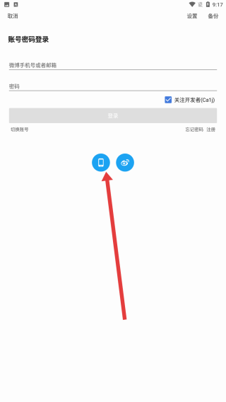 2、在app的登錄頁面中,可以點擊手機圖標(biāo),切換為使用手機號登錄方式。