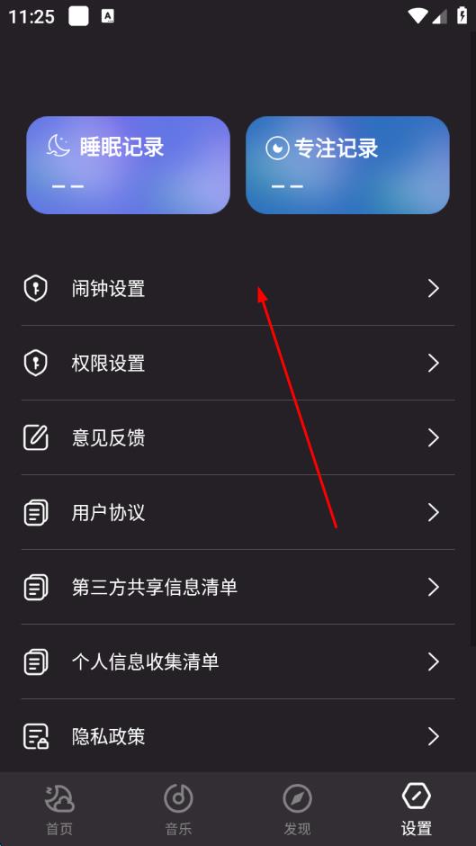 2、在設(shè)置頁面,找到并點(diǎn)擊鬧鐘設(shè)置選項(xiàng)。