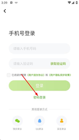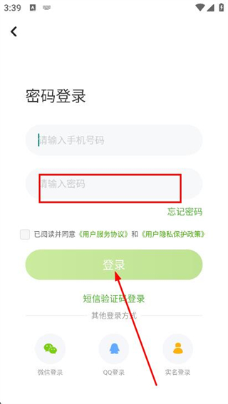 2、在登錄頁面,選擇并點(diǎn)擊密碼登錄選項(xiàng)。