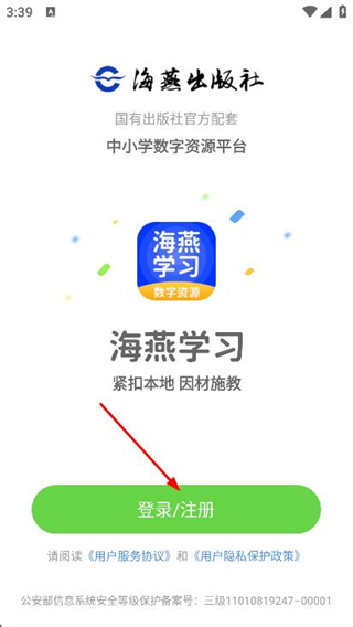 1、打開海燕學(xué)習(xí),點(diǎn)擊下方登錄/注冊(cè)選項(xiàng)。