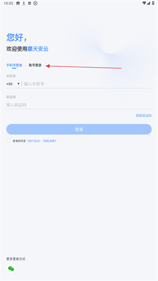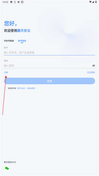 1、啟動霸天安云無線攝像頭APP,在首頁點擊賬號登錄。