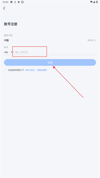 4、進入注冊的界面內,輸入手機號再點擊注冊即可。