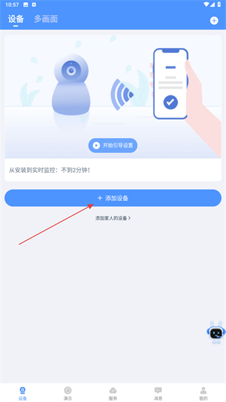 1、打開霸天安云無線攝像頭,點擊添加設備的按鈕。