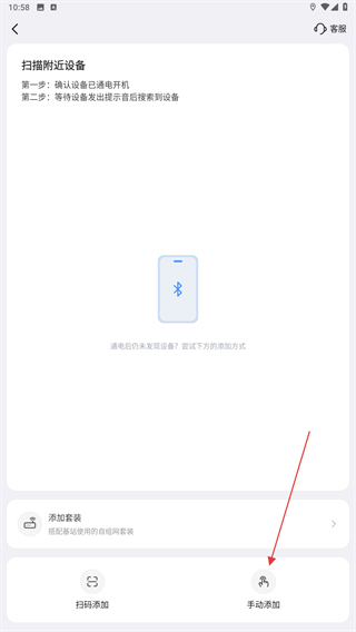 2、進入掃描的頁面內,點擊右下方手動添加的按鈕。