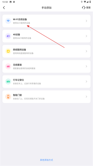3、進入手動添加的界面內,點擊Wi-Fi無線設備的按鈕。