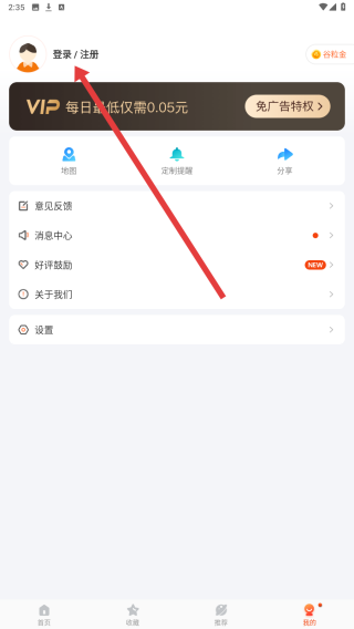 1、在應(yīng)用我的頁(yè)面,點(diǎn)擊左上角登錄/注冊(cè)按鈕,進(jìn)入掌上公交的登錄界面,開(kāi)啟賬號(hào)登錄流程。