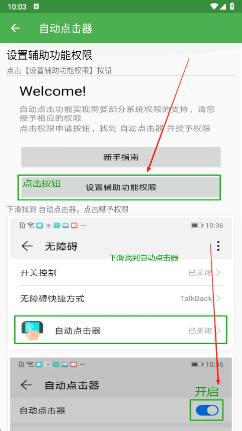 自動點(diǎn)擊器試用accessibility Service實(shí)現(xiàn)自動點(diǎn)擊,需要Android 7以上系統(tǒng)。