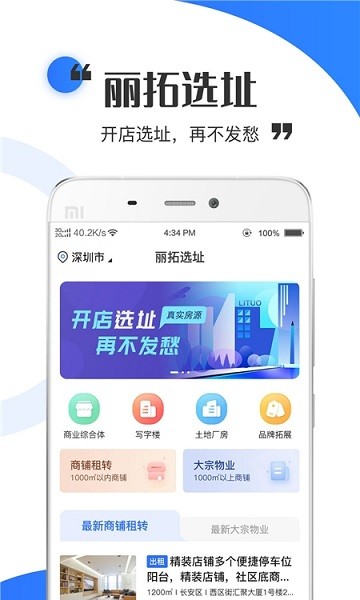 麗拓選址,一款選址招商服務(wù)軟件,可為想要開(kāi)店的用戶(hù)提供精準(zhǔn)的房源信息,做出專(zhuān)業(yè)的選址推薦,在這里用戶(hù)可輕松根據(jù)自身需求挑房選房,找到合適的開(kāi)店地址,使用十分方便,有需要的用戶(hù)可以下載使用!