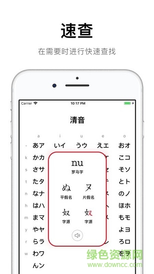 速查表可以在你需要的時候,快速找到那個你想了解的假名。