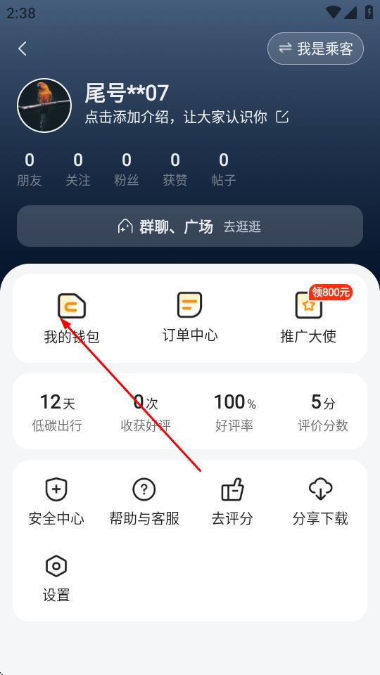 2、在個人頁面中,點擊我的錢包選項。