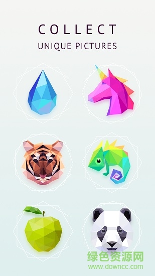 與其他poly類型游戲類似,看似立體的作品,用不同的顏色涂鴉拼接起來,形狀不同的拼圖,可以旋轉(zhuǎn)移動(dòng)到達(dá)契合,超多不同的美麗圖案。