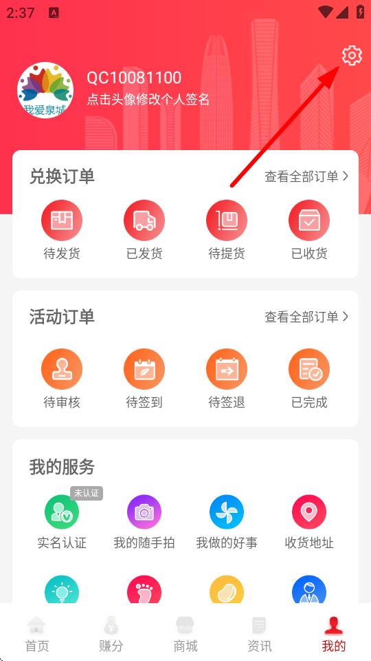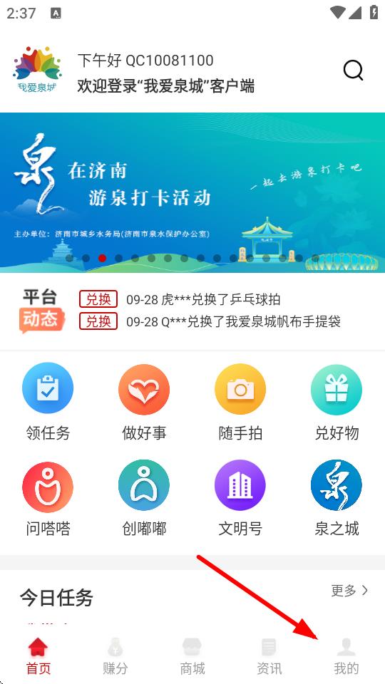 1、在我愛泉城的首頁,點擊底部我的按鈕,進入個人的頁面。