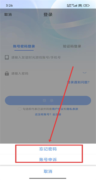 2、在出現(xiàn)的彈窗中,可以分別點(diǎn)擊忘記密碼和賬號(hào)申述進(jìn)行解決對(duì)應(yīng)問(wèn)題。