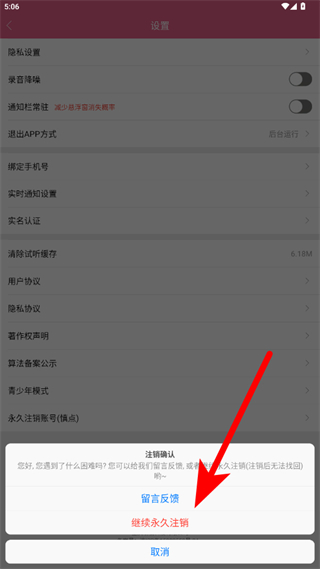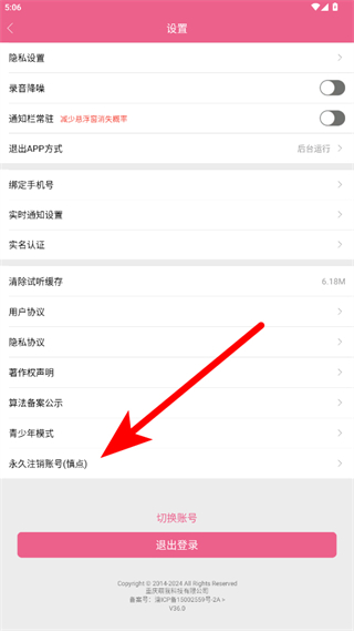 3、在設(shè)置界面里,找到并點(diǎn)擊永久注銷賬號(hào)(慎點(diǎn))選項(xiàng)。