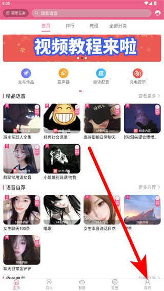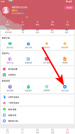 1、打開萌配音App,點(diǎn)擊底部導(dǎo)航欄最右側(cè)的我的,進(jìn)入個(gè)人頁面。