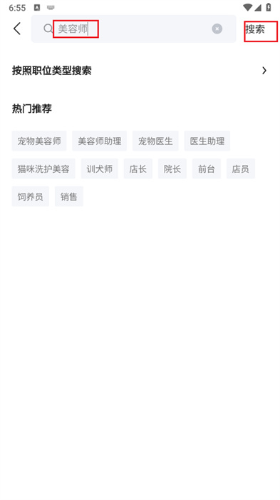 2、進入后需要點擊屏幕上方的搜索框,以進行相關(guān)職業(yè)的搜索;