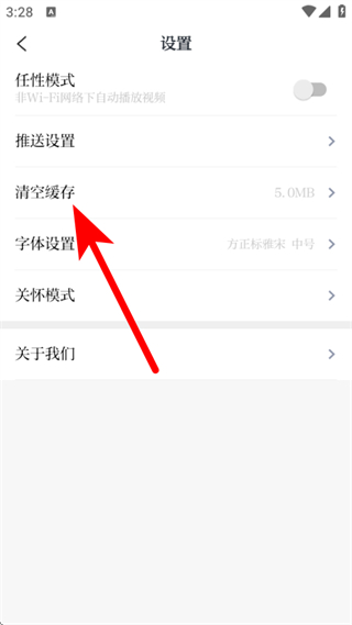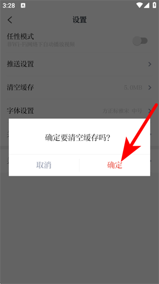 3、在設置的頁面,點擊清空緩存的這個選項,將會彈出確認框。