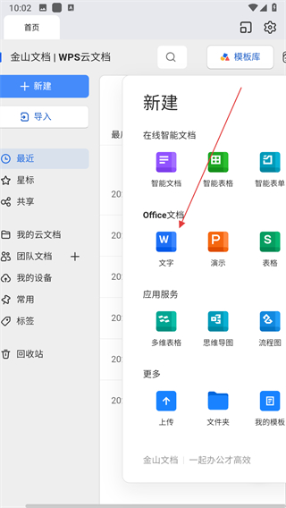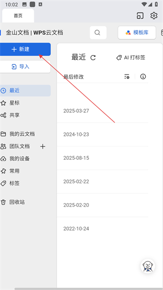 1、打開金山文檔APP,點擊新建按鈕。