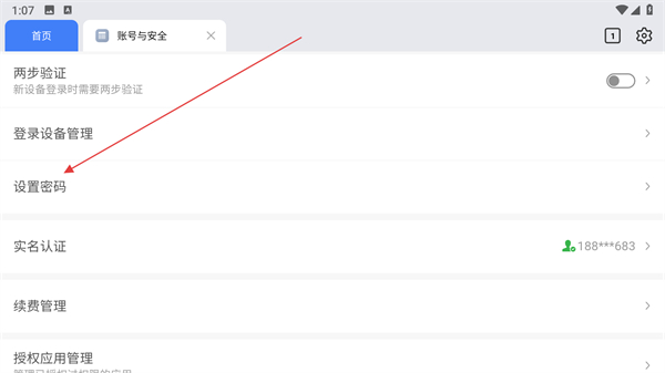 3、在賬號與安全頁面中點擊設置密碼選項。