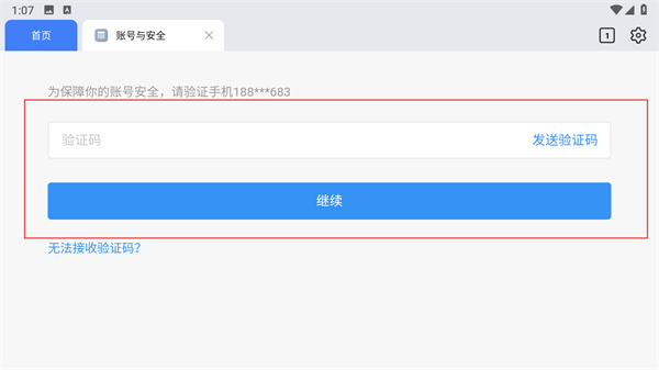 4、點擊發(fā)送驗證碼,輸入驗證碼后點擊繼續(xù)。
