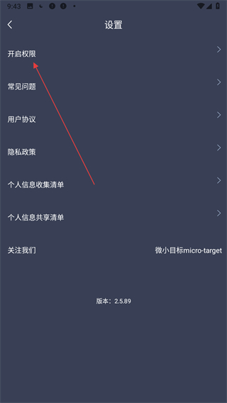 2、在設(shè)置頁(yè)面中找到開(kāi)啟權(quán)限選項(xiàng)并點(diǎn)擊。