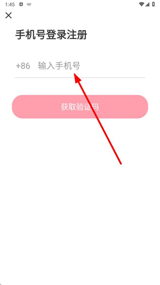 3、在手機(jī)號(hào)登錄注冊(cè)界面,輸入手機(jī)號(hào),點(diǎn)擊獲取驗(yàn)證碼。