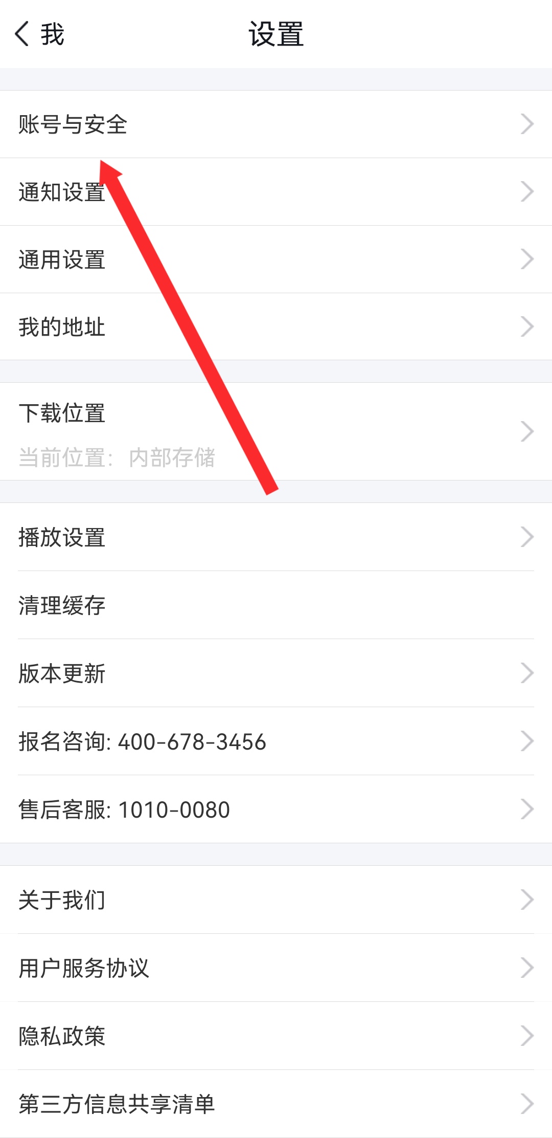 2、在設(shè)置的界面,需點(diǎn)擊賬號(hào)與安全,進(jìn)入賬號(hào)安全的頁(yè)面。