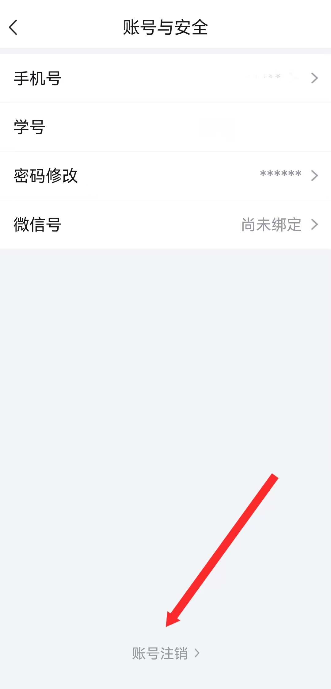 3、在賬號(hào)安全的頁(yè)面,點(diǎn)擊賬號(hào)注銷按鈕,進(jìn)入注銷說明頁(yè)。