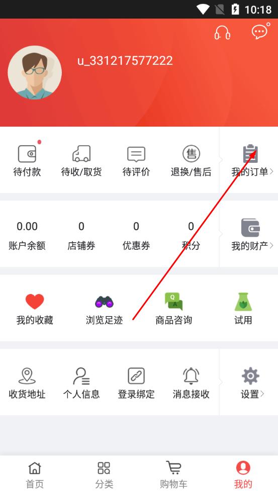 2、在“我的”頁面中,找到并點擊我的訂單選項。