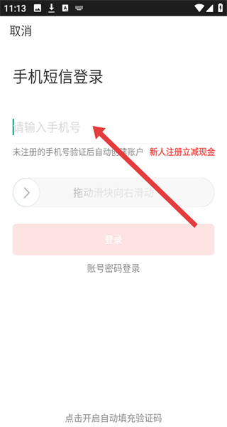 3、在手機短信登錄界面輸入手機號,以便獲取驗證進行登錄。