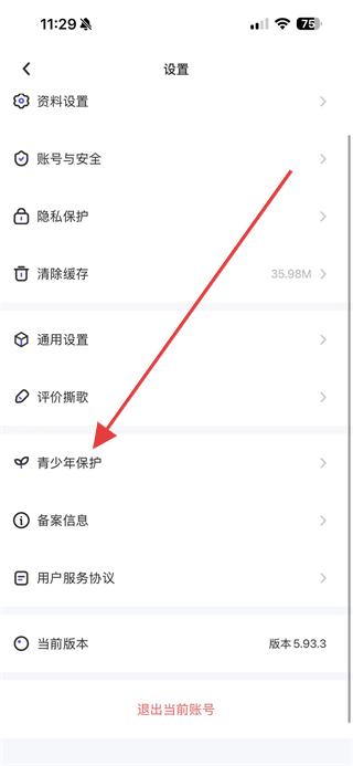 4、在設(shè)置界面中,點(diǎn)擊青少年保護(hù)選項(xiàng),可根據(jù)提示進(jìn)行青少年保護(hù)相關(guān)設(shè)置。