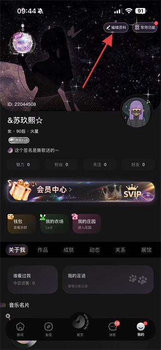 2、在個(gè)人頁(yè)面中點(diǎn)擊編輯資料,進(jìn)入完善個(gè)人資料界面。