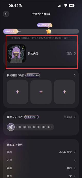3、在完善個(gè)人資料界面中點(diǎn)擊我的頭像旁的更換,彈出頭像設(shè)置選項(xiàng)。