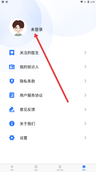 2、在我的主頁中,可以通過點擊未登錄,進入登錄注冊操作。