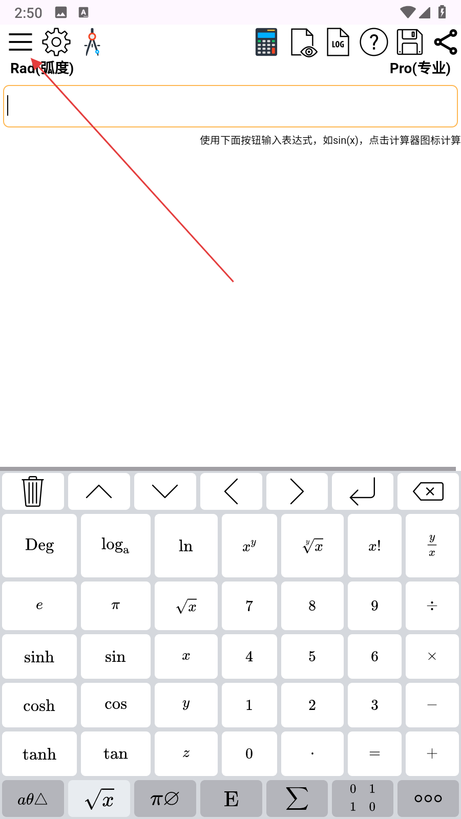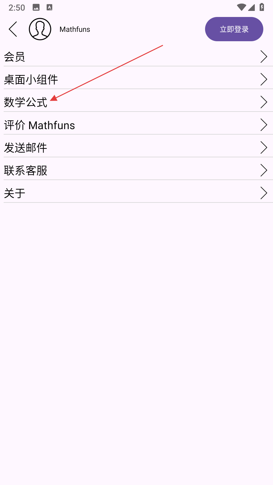1、打開Mathfuns應(yīng)用,點(diǎn)擊界面左上角的三條橫線菜單按鈕,進(jìn)入功能列表。