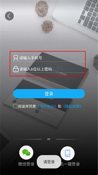 3、在“請輸入手機號”欄輸入手機號,在“請輸入6位以上密碼”欄輸入密碼。