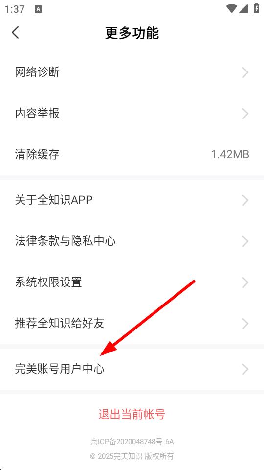 2、在更多功能界面,點(diǎn)擊完美賬號用戶中心,進(jìn)入賬號管理頁面。