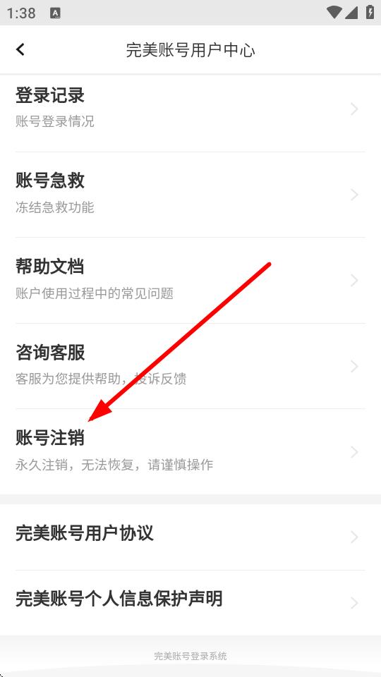 3、在完美賬號用戶中心,點(diǎn)擊賬號注銷,進(jìn)入風(fēng)險提示頁面。