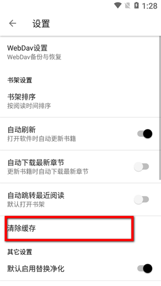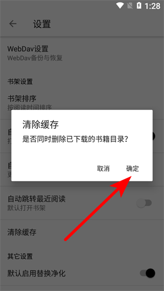 3、在設(shè)置頁面,點擊清除緩存選項,彈出確認窗口。