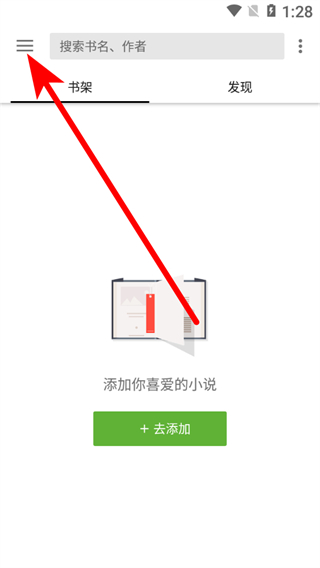 1.打開輕閱小說應(yīng)用程序,此時默認顯示的書架頁面通??湛杖缫玻路接行涯康木G色點擊該按鈕,即可進入添加書本的相關(guān)操作環(huán)節(jié)。
