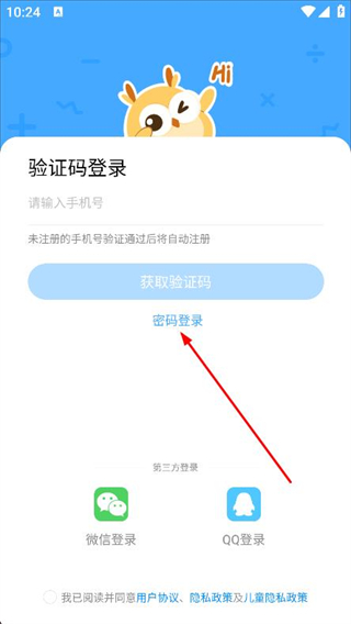 1、打開(kāi)學(xué)霸在線(xiàn),點(diǎn)擊下方的密碼登錄選項(xiàng)。