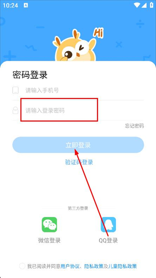 3、輸入密碼,點(diǎn)擊立即登錄,即可完成登錄。