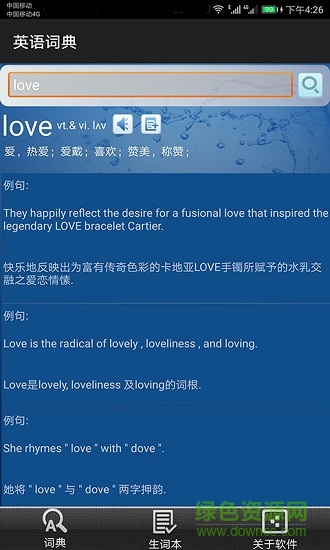 英語詞典是一款非常好用的英語詞典app,他能通過發(fā)音來幫助用戶來學(xué)習(xí)英語,而且還能真是模擬英語語音發(fā)音,發(fā)音十分的標(biāo)準(zhǔn),而且還提供少見的網(wǎng)絡(luò)語言翻譯,是非常不錯的手機(jī)應(yīng)用,感興趣的用戶快來綠色資源網(wǎng)下載吧!