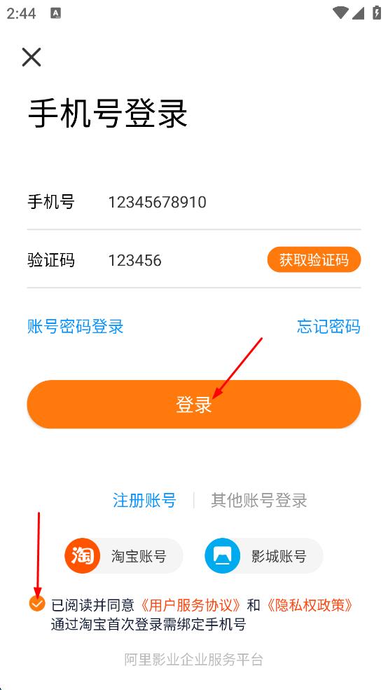 3、在登錄頁面,輸入手機(jī)號,獲取并輸入驗(yàn)證碼,勾選同意協(xié)議。
