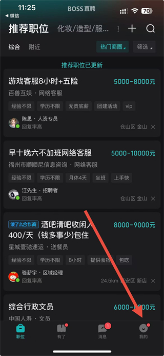 1、在職位頁面,點擊底部我的選項,進入個人相關(guān)頁面。