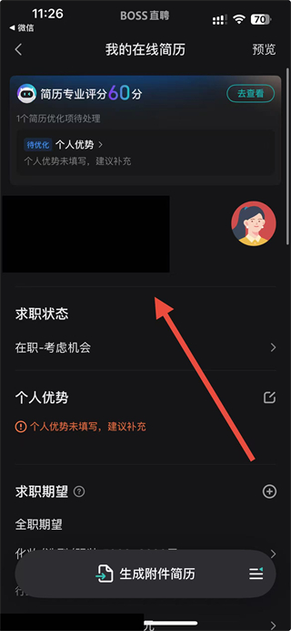 3、在我的在線簡歷頁面,可對求職狀態(tài)、個人優(yōu)勢、求職期望等內(nèi)容進行修改編輯。