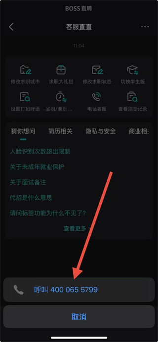 4、在彈窗中,點擊呼叫-400-065-5799按鈕,即可電話聯(lián)系人工客服。