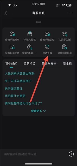 3、在客服直直界面,點擊電話客服選項,彈出包含客服電話的操作彈窗。
