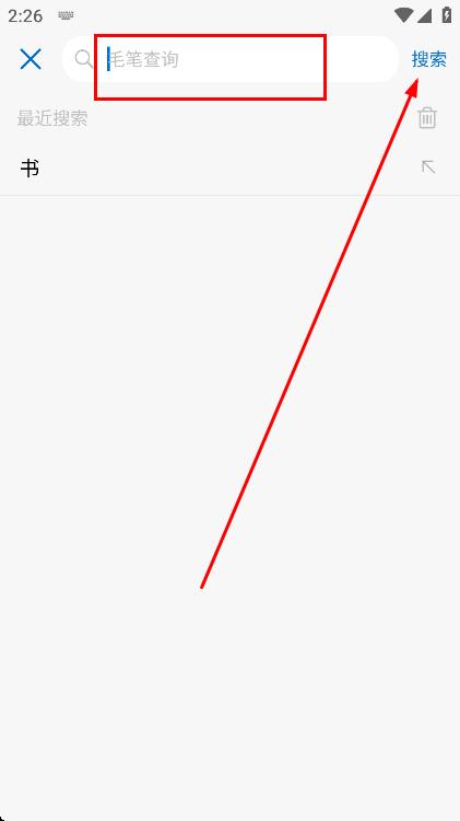 2、在搜索框中輸入想練習(xí)手寫的字,完成后點(diǎn)擊搜索。