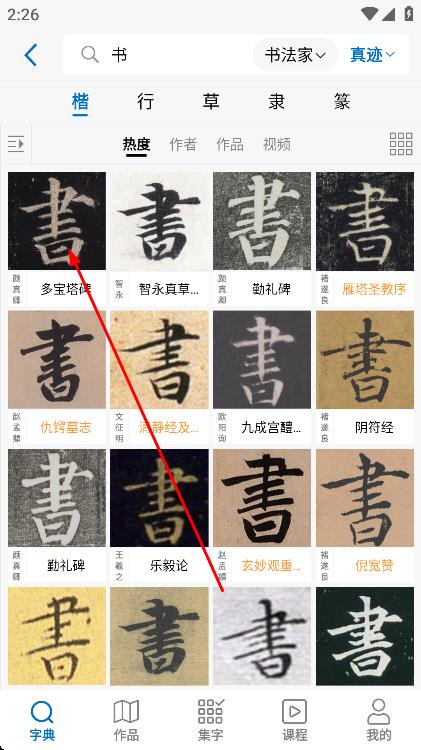 3、在搜索結(jié)果里,選擇需要聯(lián)系的書法字體,點(diǎn)擊進(jìn)入。
